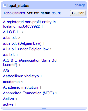 As an alternative, open registries are beginning to compile organisational identifiers in a form that is easy to re-use and thus enables the sharing of databases which have been augmented with such information. OpenCorporates.com (http://opencorporates.com) is a startup that collects information from companies world-wide and provides a convenient API to match datasets with the list of known countries. The IATI project for aid transparency is working towards similar standards for other organisations, such as foreign governments and charities active in the development space.
