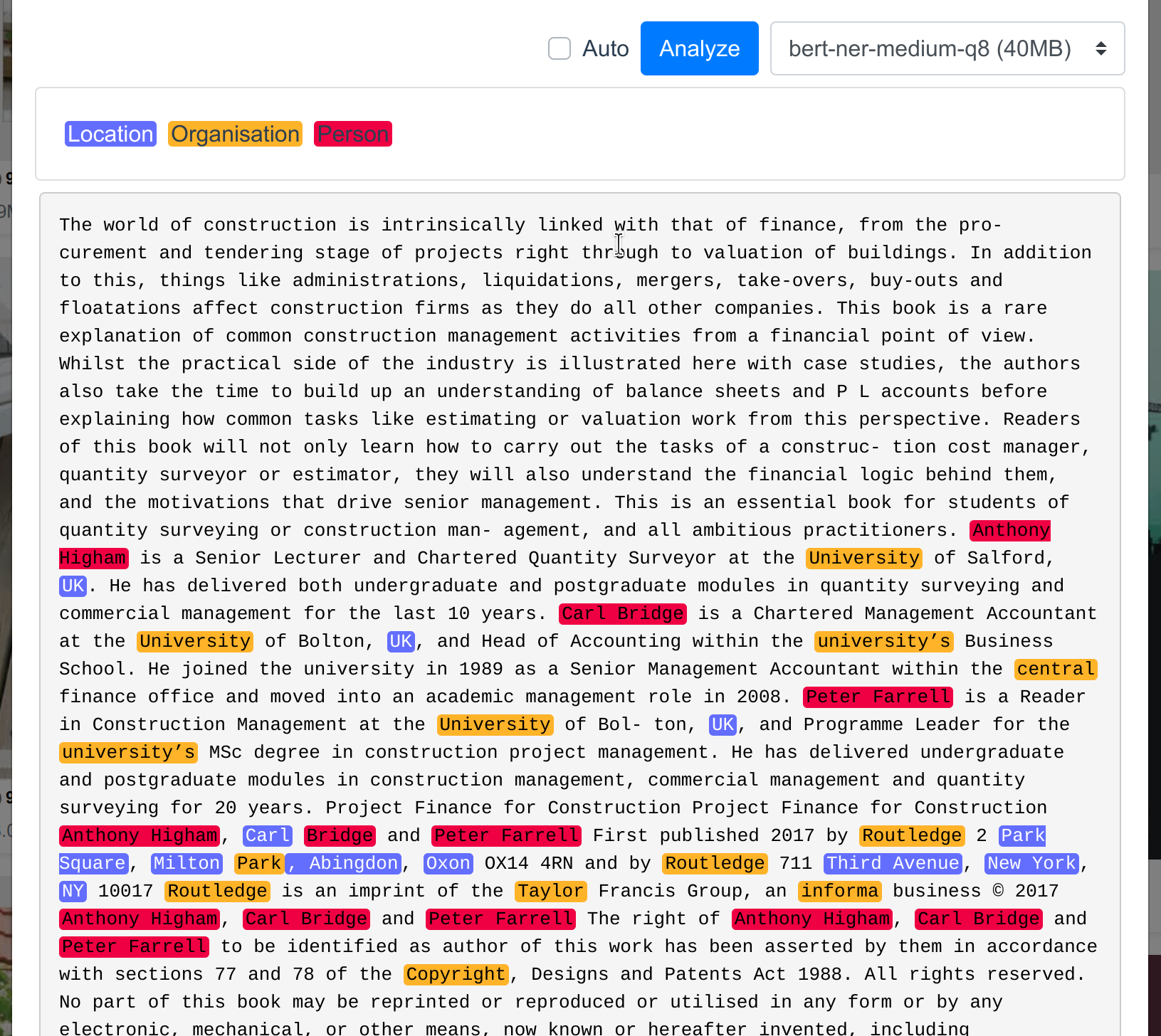 • Named-entity recognition (client-side) ****